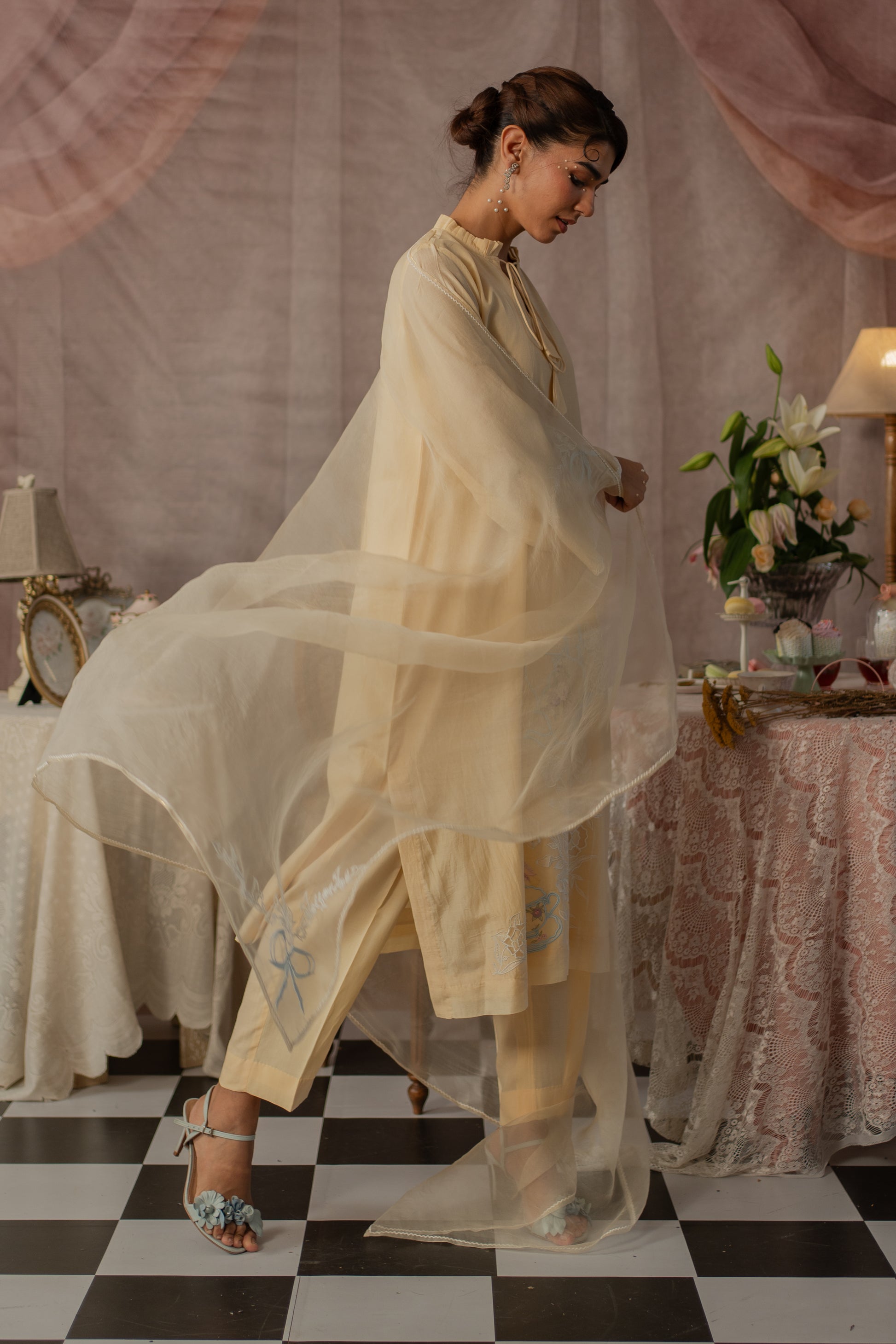 Optional Dupatta: Optionally pair it with an organza dupatta (sold separately) finished with delicate edging and embroidered bows on two corners for a sweet, graceful touch